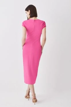 Karen Millen Square Neck Military Trim Ponte Pencil Midaxi Dress