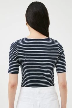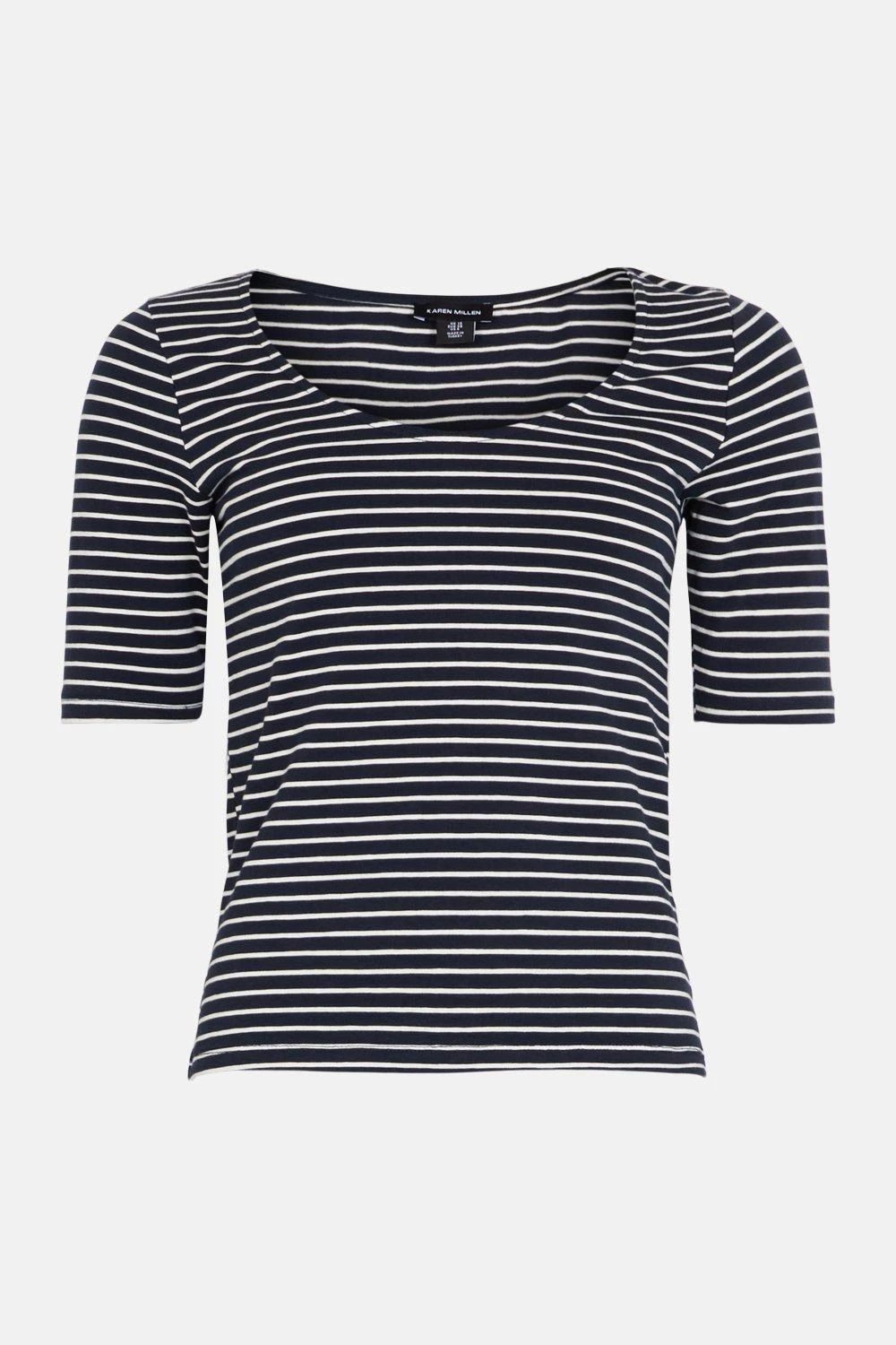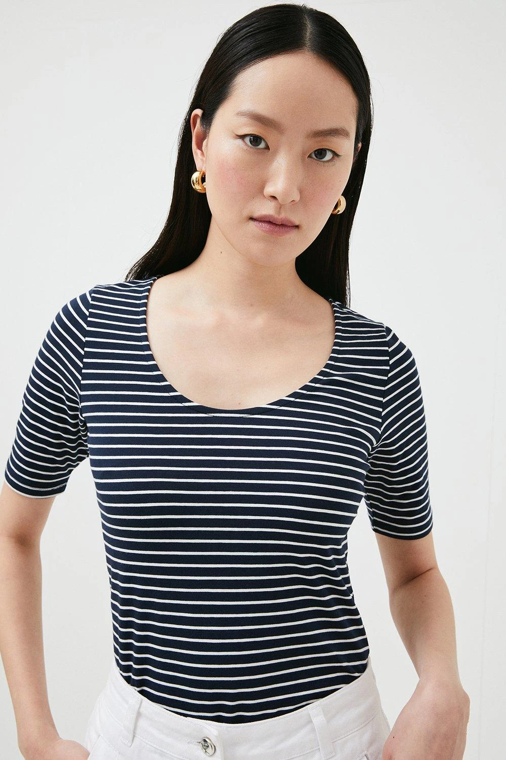 A striped top is an investment you can look to year in and out. Crafted in breathable cotton, this short-sleeved style is a must for any capsule wardrobe. Embrace a nautical aesthetic and pair with white jeans and a classic red lip.