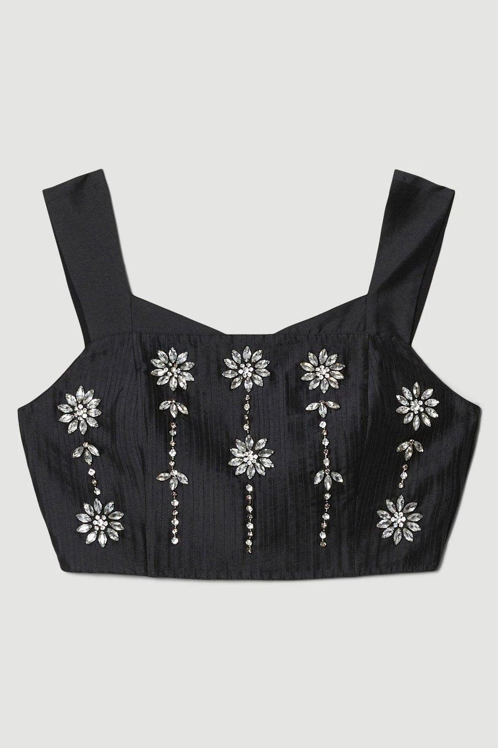 Adorned with gleaming crystal floral embellishments, this corset top makes a truly decadent addition to your partywear wardrobe. Style with the matching pencil skirt for an opulent finish.