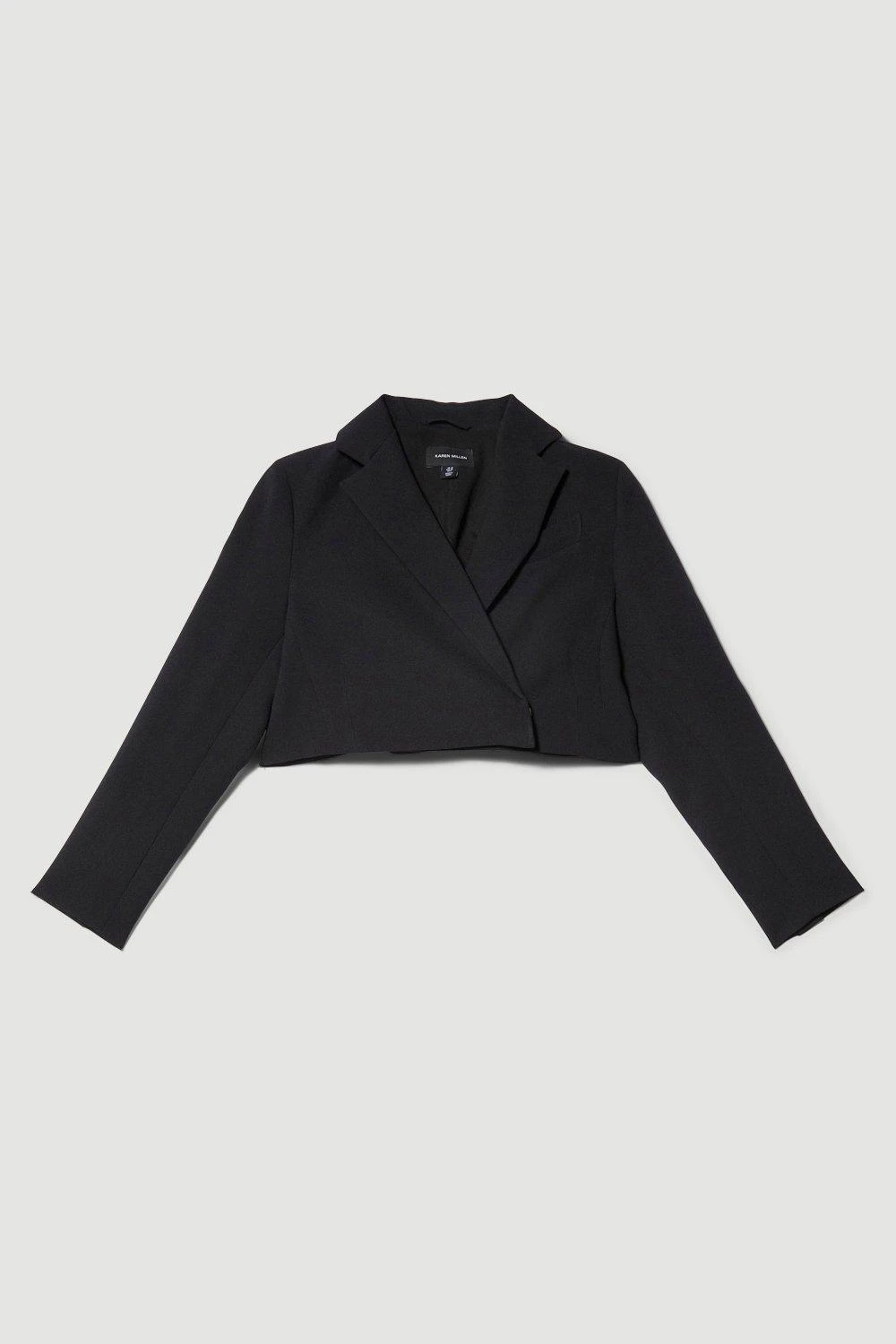 An amalgamation of traditional tailoring and contemporary proportions, this blazer makes a directional addition to your capsule collection. Cut to a sharp, cropped silhouette, this piece exudes a clean aesthetic. Style this blazer with slim-fitting black trousers for an effortlessly impactful look.