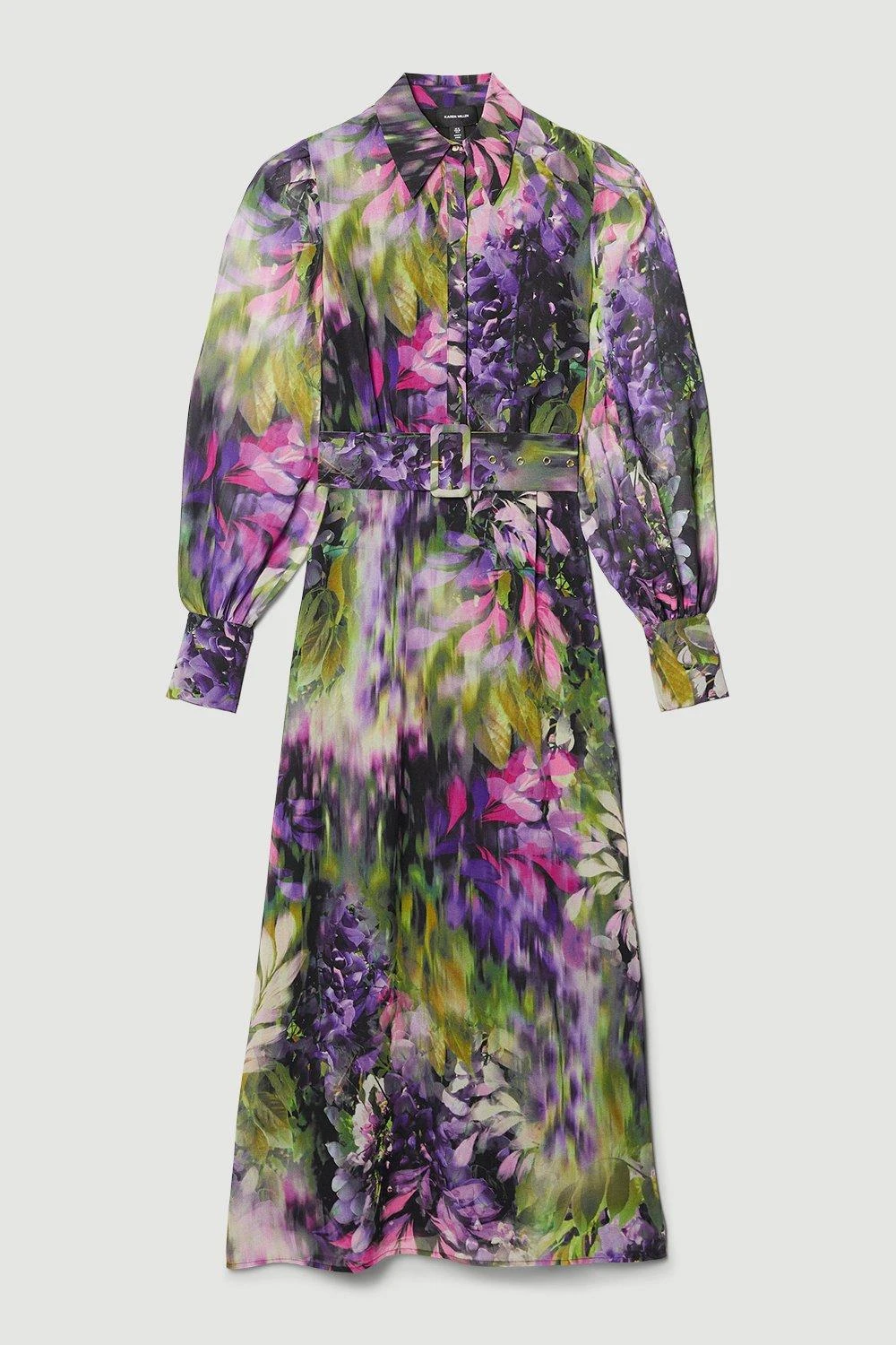Encapsulate botanical beauty in this elegant midi dress. Balloon sleeves and a flowing midi skirt add an ethereal touch to this piece, while a collared neckline and buckle belt add a level of sophistication. The vibrant floral print is perfectly suited to a spring soiree, wedding, or race day.