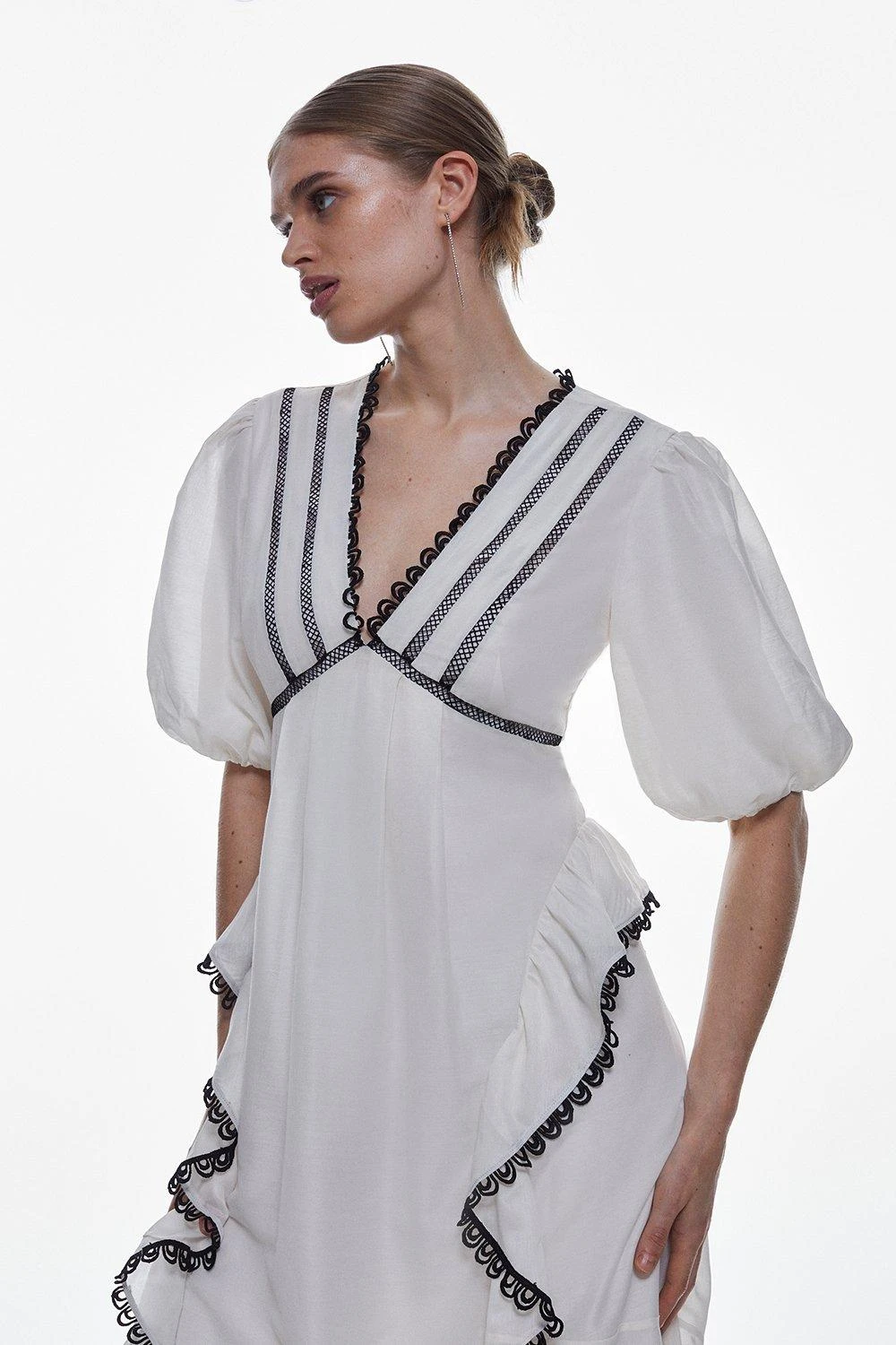 This romantic design can be styled for both everyday and special occasions. Puff sleeves create a flattering effect, while ruffle lace details add a whimsical feel. Pair this maxi dress with either sandals or heels.