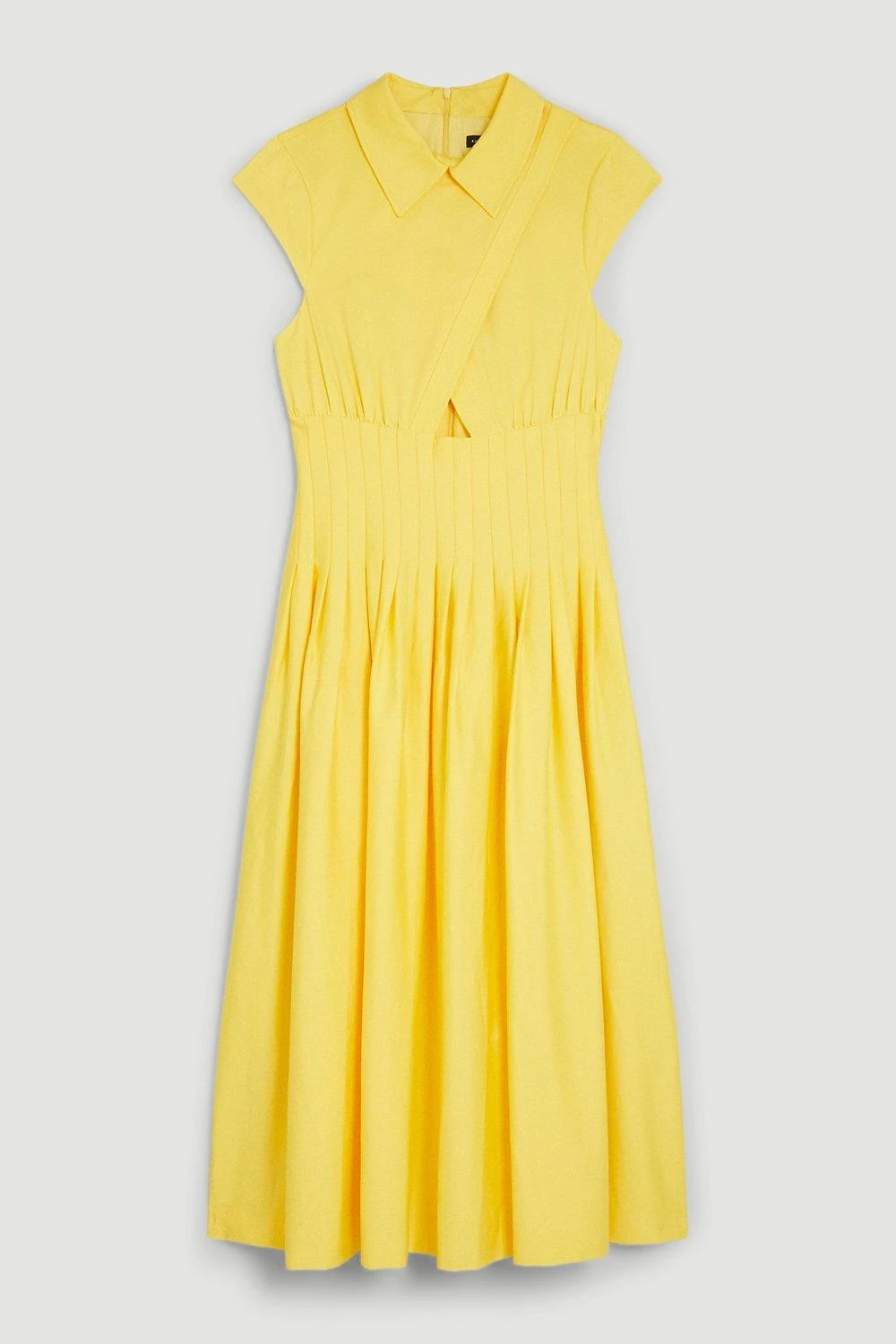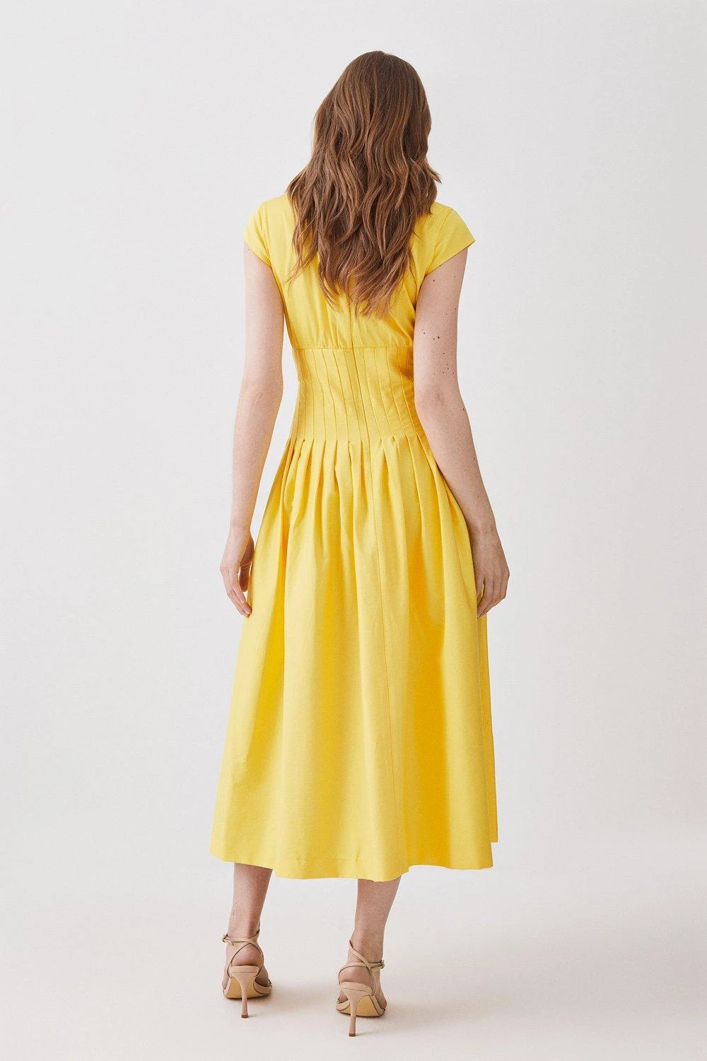 This classic summer dress has been reimagined with a contemporary vision, showcased through a flattering pressed crease waistband, layered bodice and collared neckline. A cotton composition creates a naturally lightweight feel.