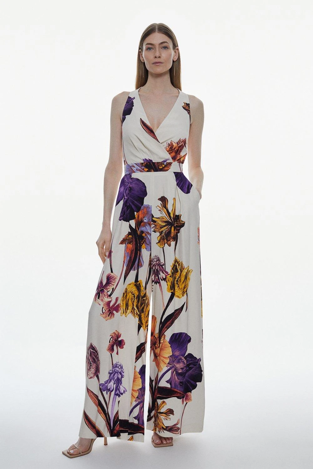 Karen Millen Tall Satin Crepe Drama Floral Belted Jumpsuit
