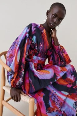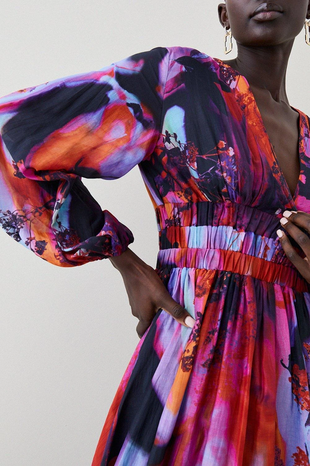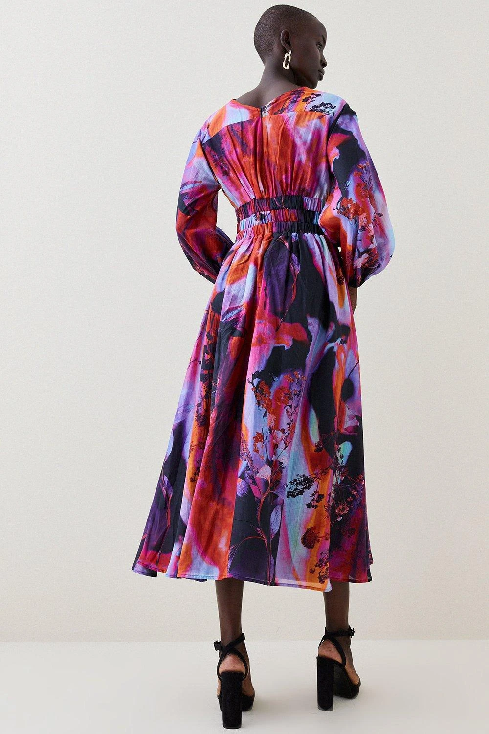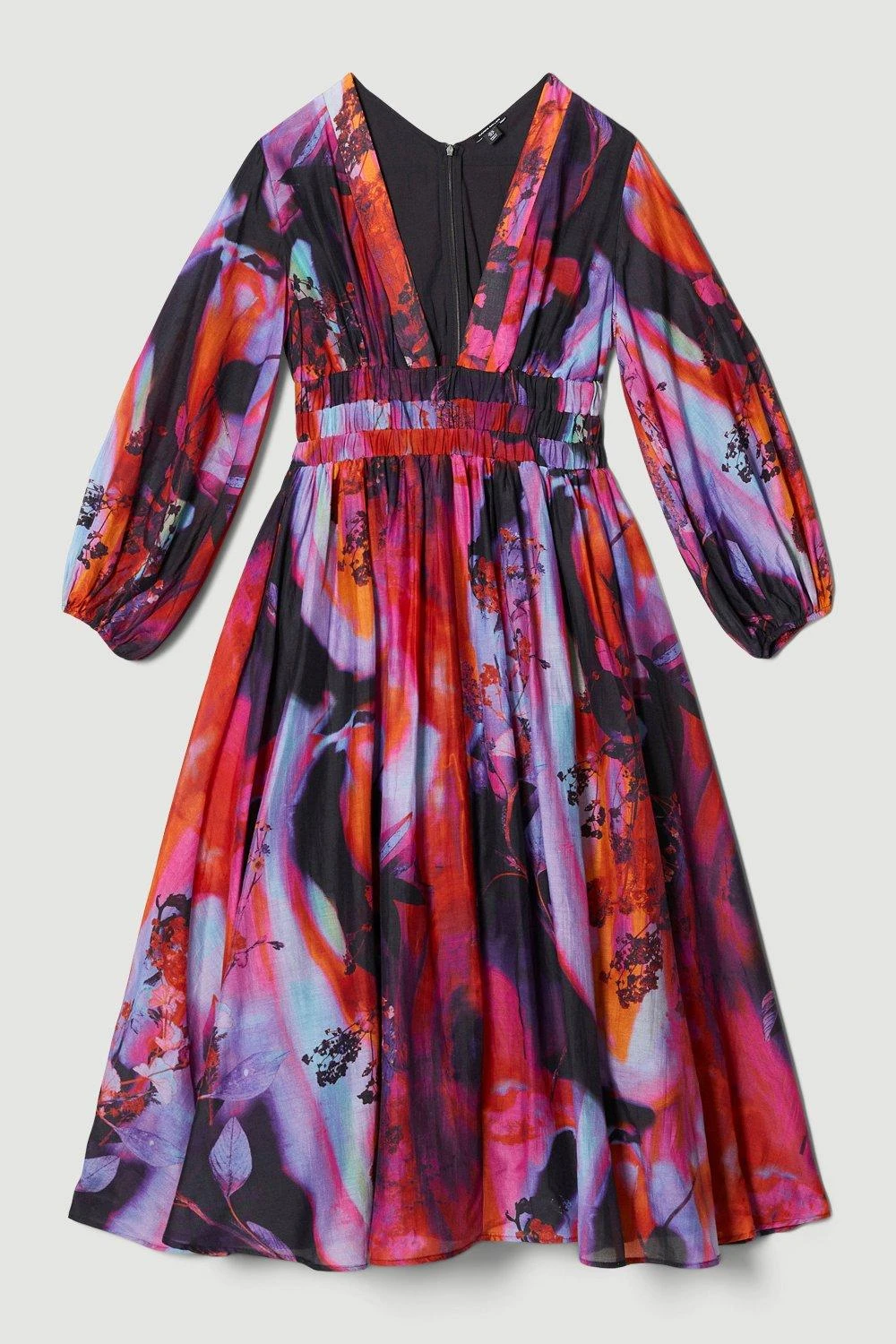 Main 70% Cotton, 30% Silk, Lining 100% Cotton. Machine wash with similar colours. Model wears UK 8/US 4. Model Height 5″10. Centre Back Length 130cm.