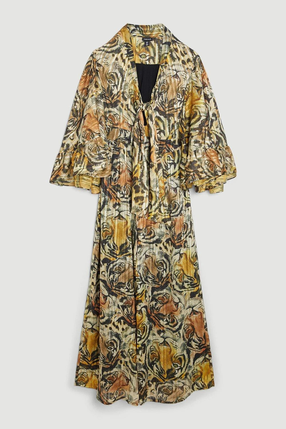 100% polyester. Gentle machine wash at 30 with similar colours. Model wears a UK 8/US Size 6.