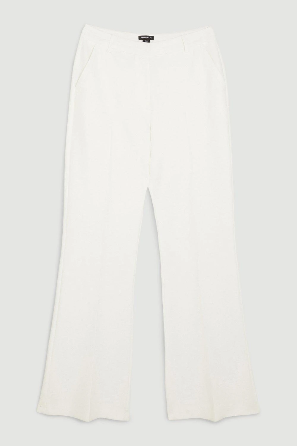 Featuring pressed crease detailing, a mid-rise waist and subtle flare design, these trousers naturally flatter the silhouette. Style this pair with court heels and a cotton blouse to achieve a covetable sleek aesthetic.