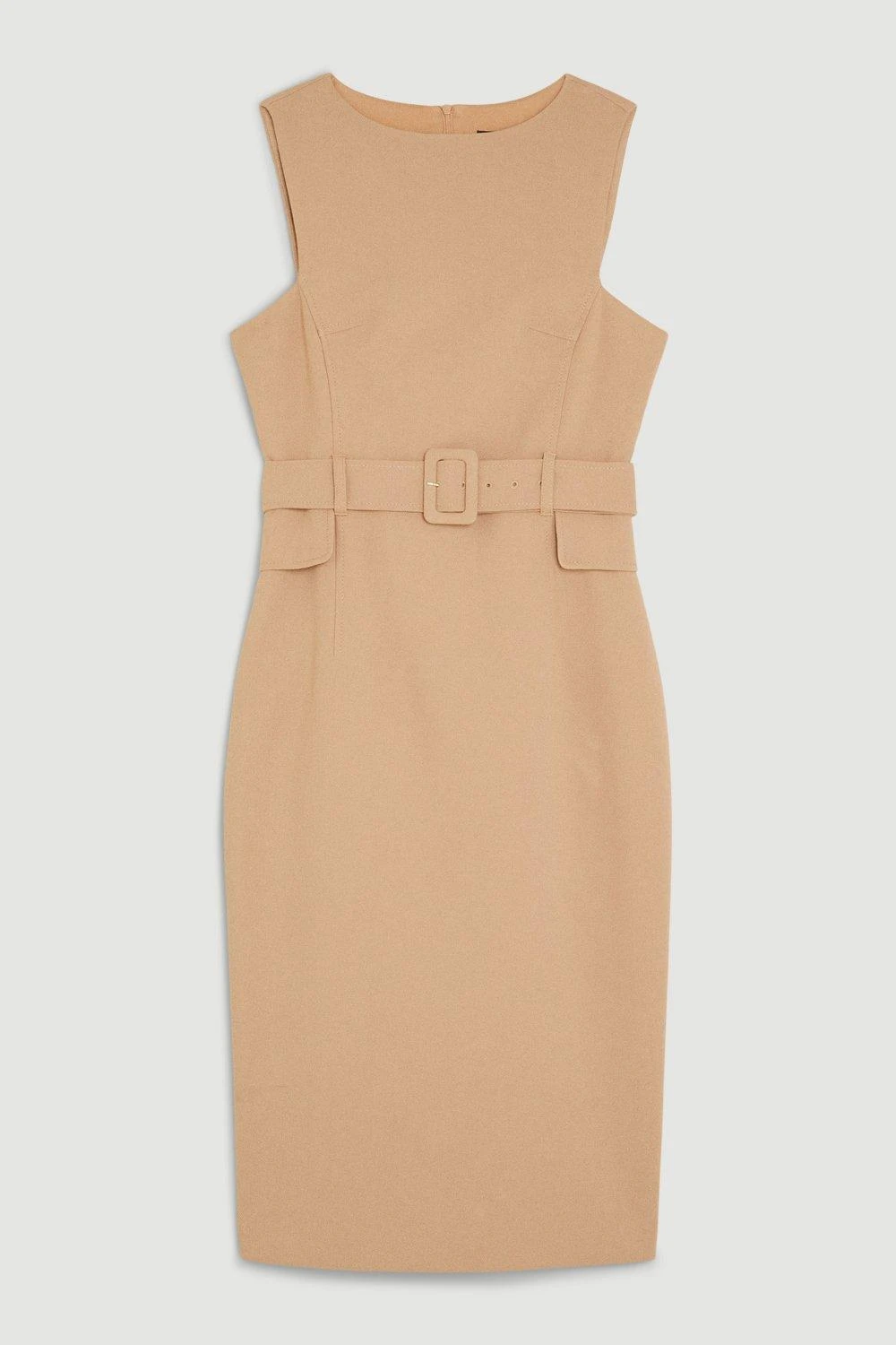 Exude understated elegance in this classic pencil dress. A jewel neckline and buckle belt nods to a retro aesthetic, while signature compact stretch material skims to the form to create a flattering silhouette. Style this piece with pointed heels for a sophisticated office look.