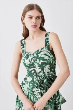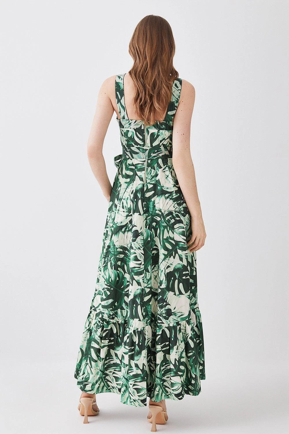 Karen Millen Tropical Belted Strappy Cotton Woven Maxi Dress