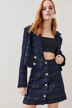Main: 76% Acrylic, 11% Cotton, 10% Polyester, 3% Metallised fibres. Lining: 100% Polyester. Dry clean only. Model wears UK 8/US 4. Model height: 5″9. Length measurement: 45cm.