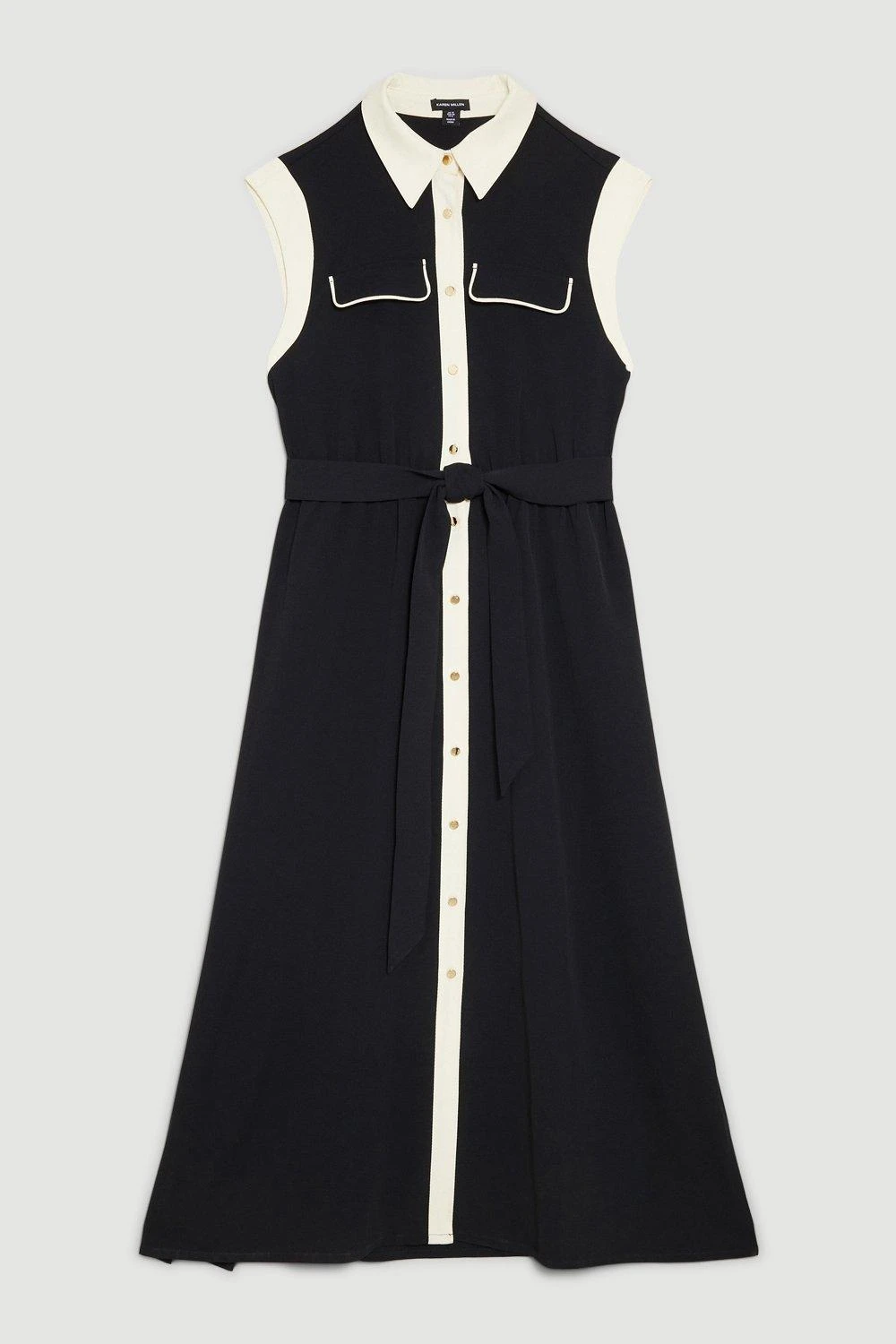 This belted shirt dress is a versatile staple piece. Crafted from lightweight twill fabric, this shirt dress provides instant sophistication throughout warmer seasons. A wrap belt cinches the waist, while gold-tone buttons add a polished finish.