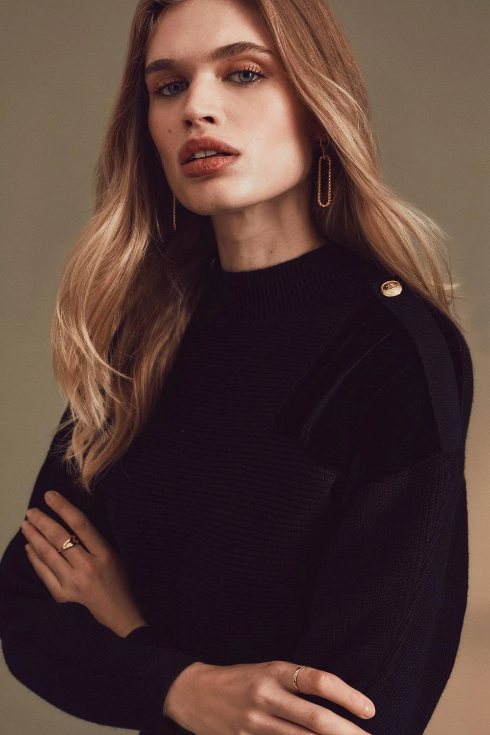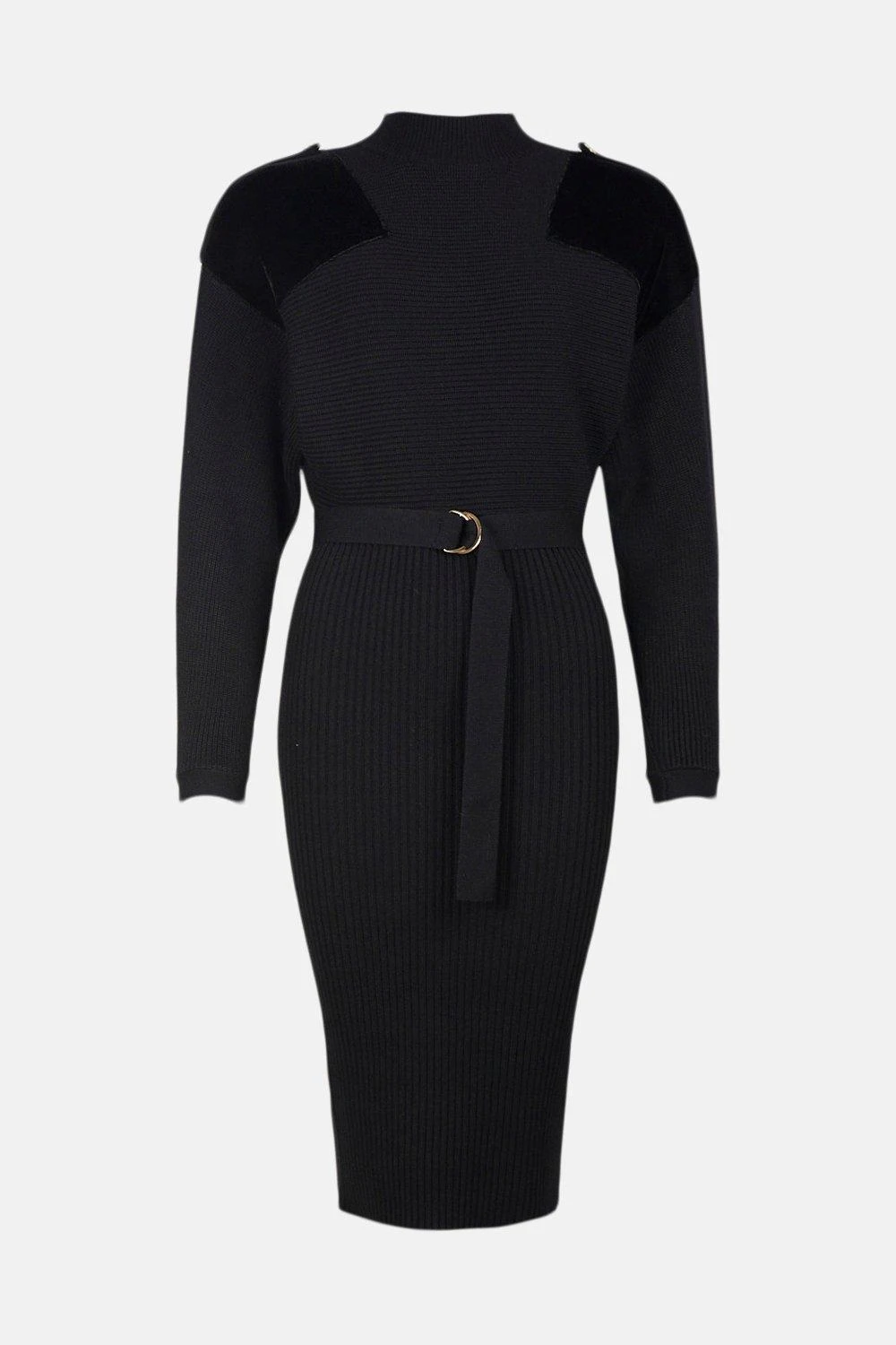 Texture play is the name of the game when it comes to this elegant knitted midi dress. Adorned with touchable velvet panels at the shoulder, it imbues new-season looks with a sense of sophistication, finished with a D-ring belt and vintage-inspired batwing sleeves.