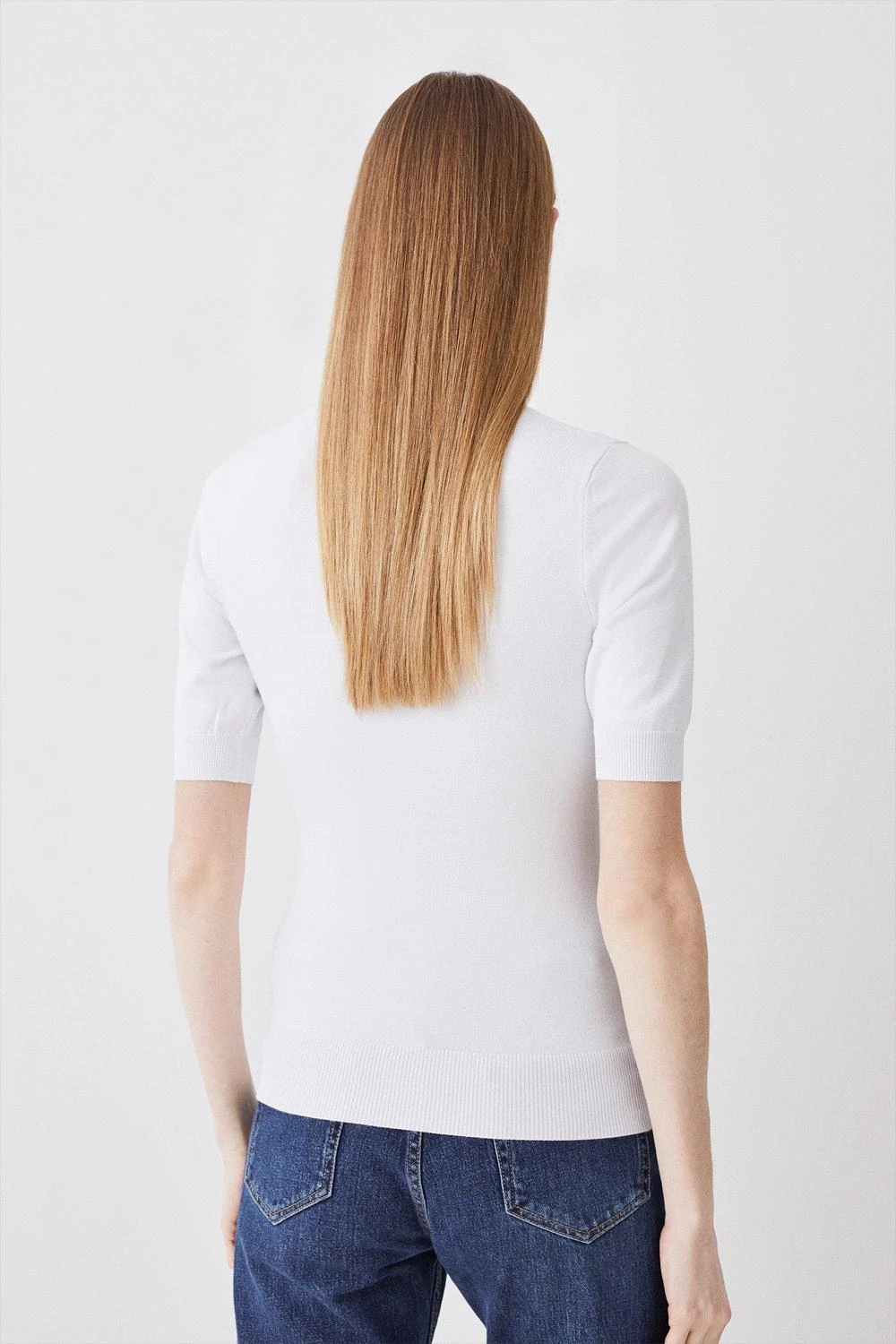 This slim-fit jumper features a high neck and short sleeves for a covetable, ’90s-inspired aesthetic. Encompassing a minimalist mood, this piece can be styled with numerous separates for a sophisticated look.