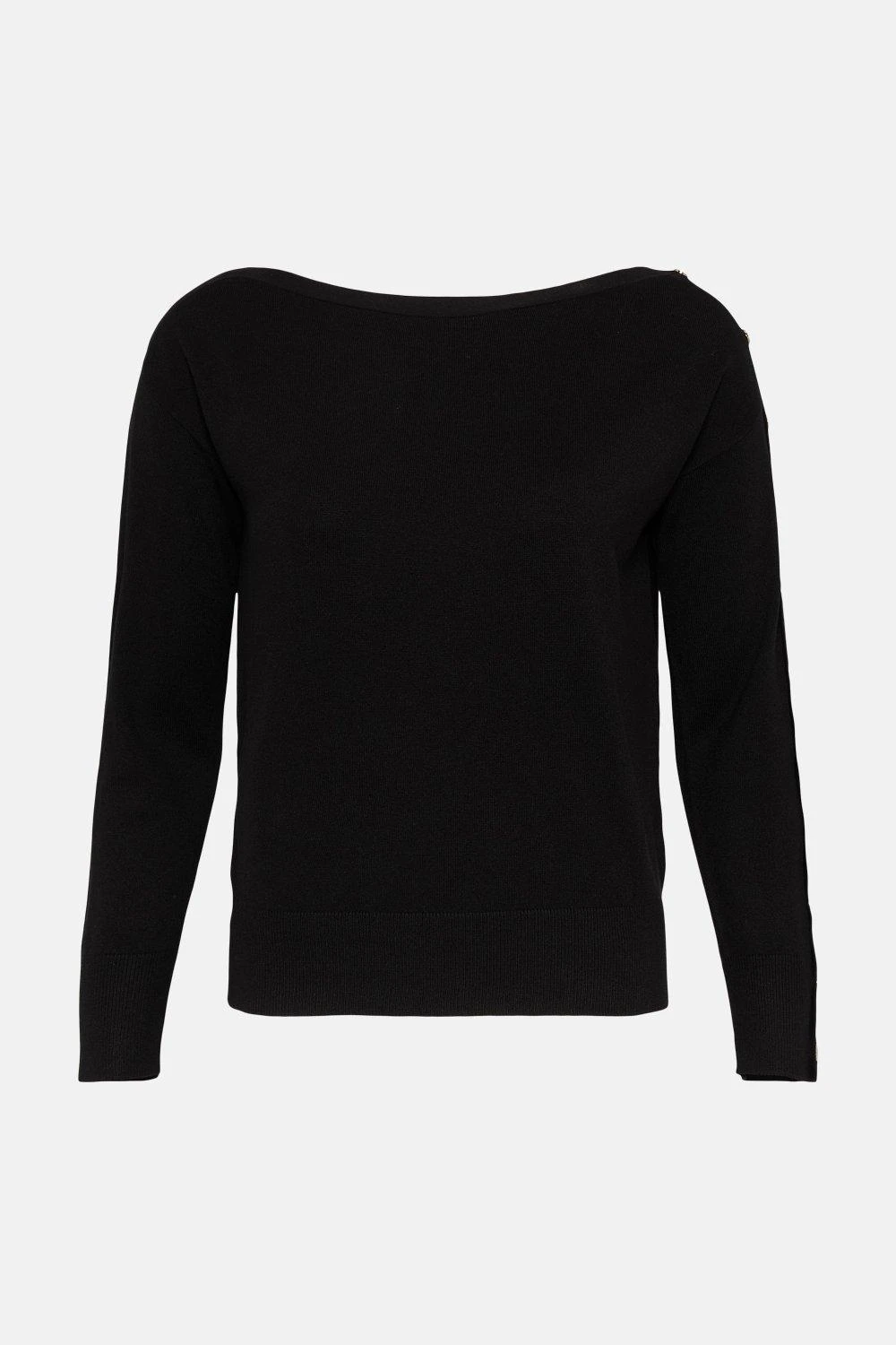 Crafted with sustainably sourced viscose, this slouchy jumper has potential to become a staple in any wardrobe. With a wide neck for a relaxed feel, its completed with a high shine metal trim on the sleeves.