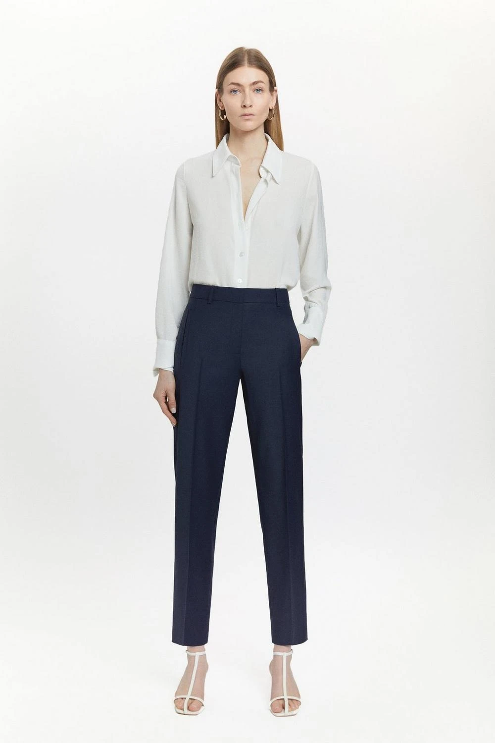Main: 52% Polyester, 43% Virgin Wool, 4% Elastane. Dry clean only. Model wears UK 8/US 4. Model height: 5″9.