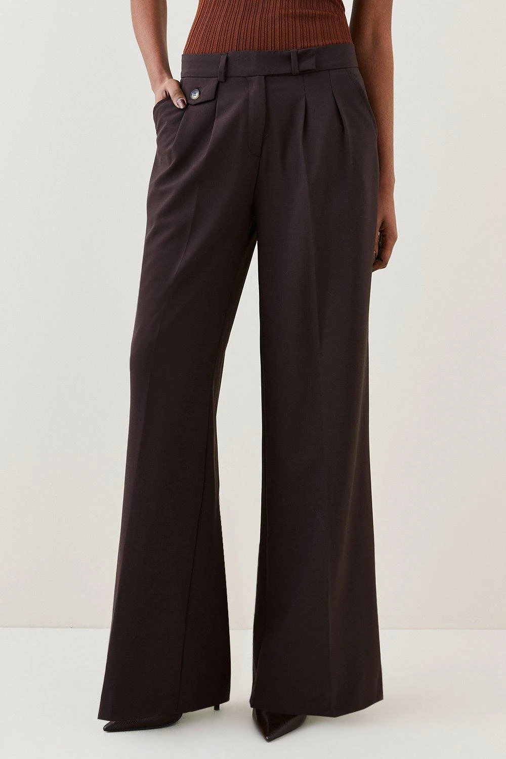 Karen Millen Wool Blend Pleat Detail Wide Leg Trouser