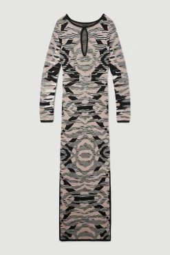 Karen Millen Asymmetric Colour Block Bandage Knit Midi Dress