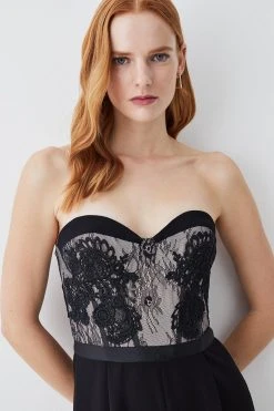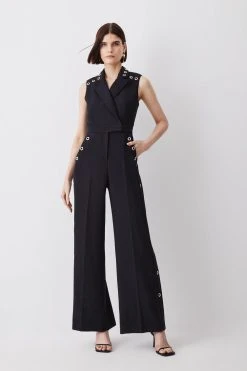 Karen Millen Compact Stretch Mesh Cut Out Eyelet Detail Wide Leg Jumpsuit