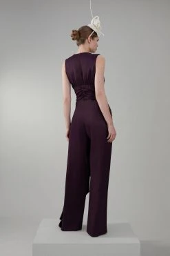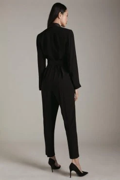 Karen Millen Soft Satin Back Crepe Statement Sleeve Jumpsuit