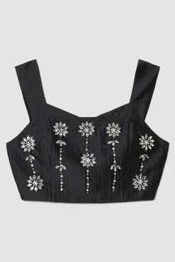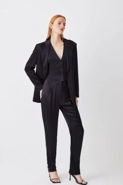 Karen Millen Italian Structed Satin Bandeau Wide Leg Jumpsuit