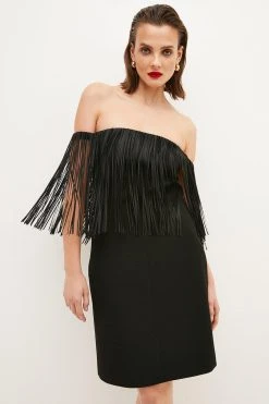 Karen Millen Structured Crepe Bardot Belted Wide Leg Jumpsuit