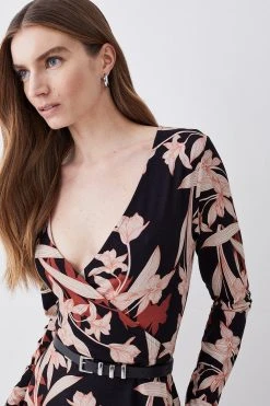 Karen Millen Boarder Floral Print Satin Woven Midi Dress
