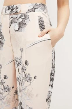 Karen Millen Blush Hydrangea Garden Flora Satin Crepe Woven Trouser