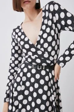 Karen Millen Belted Viscose Blend Long Sleeve Jersey Skater Dress