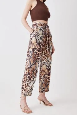 Karen Millen Animal Print Premium Linen Viscose Woven Trouser