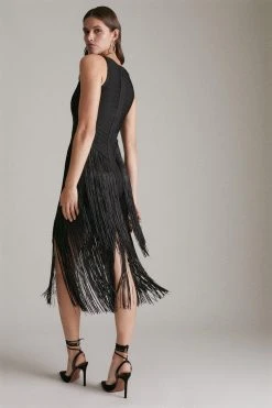 Karen Millen Bandage Knit Fringe Tiered Midi Dress