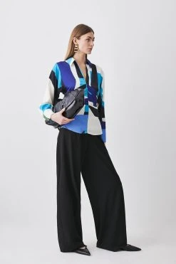 Karen Millen Abstract 60s Colourblock Silk Viscose Beach Trousers