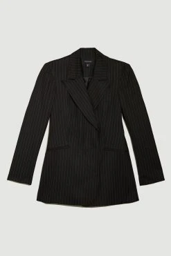 Karen Millen Structured Crepe Belted Wide Shoulder Longline Blazer