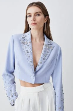 Karen Millen Embellished Stretch Woven Cropped Jacket