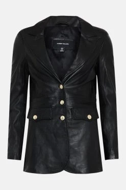 Karen Millen Leather Gold Button Single Breasted Blazer