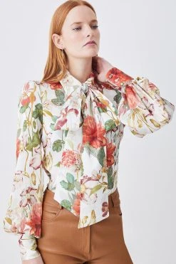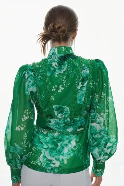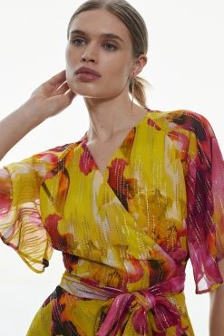 Karen Millen Floral Sparkle Iridescent Wrap Front Woven Blouse