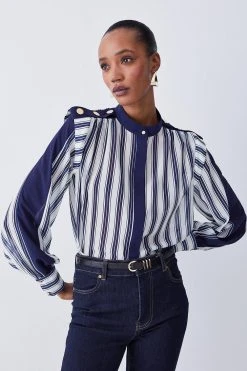 Karen Millen Lydia Millen Ruffle Balloon Sleeve Woven Blouse